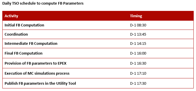 Publication on 05/06/2018 all Stakeholders in Q2 2018 including the FB parameters used, the 12 typical days and their categorization.